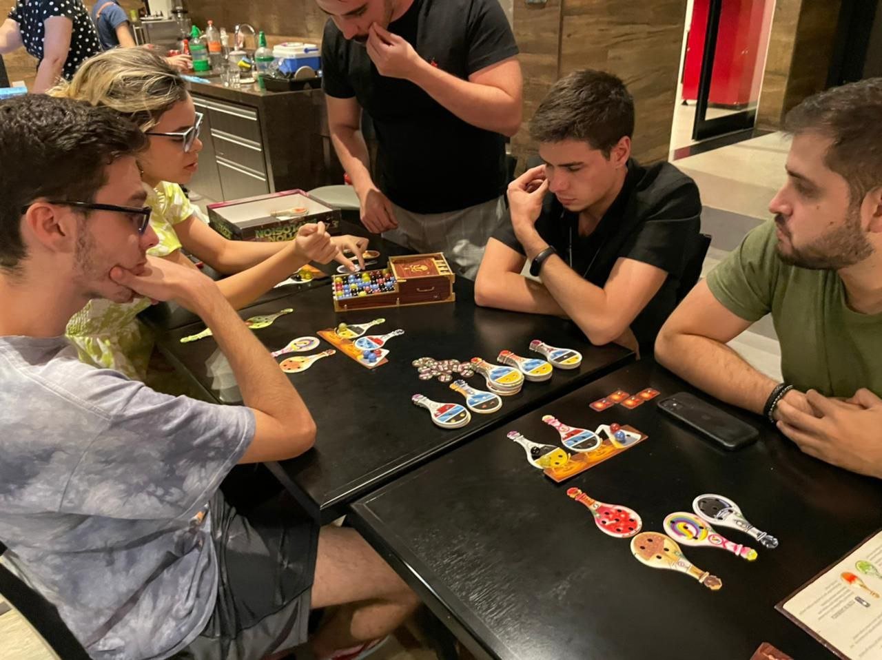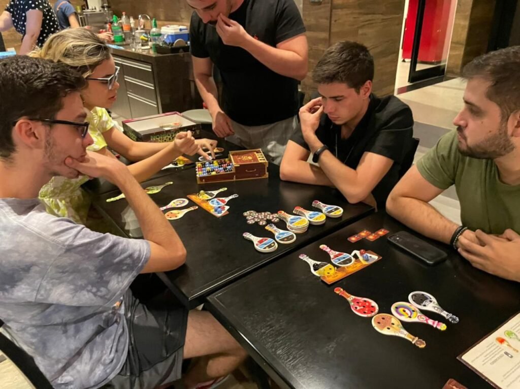 Além disso, em nossos encontros sempre buscamos encontrar um grupo de pessoas que possa ensinar nossos participantes a jogar os jogos que vão estar no evento. Assim, você mesmo sendo iniciante tem total apoio para aprender a jogar os jogos que você tiver interesse e terá a ajuda inicial que precisar na sua caminhada dentro do mundo dos boardgames! Além de conhecer novas pessoas que podem te ajudar a formar seu próprio grupo de jogatinas.